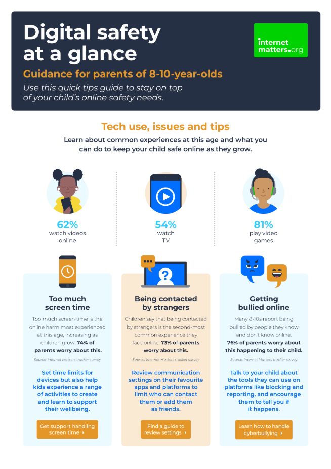 This online safety guide provides quick tips in just 2 pages to help parents keep up with their children aged 8-10 years’ digital needs.